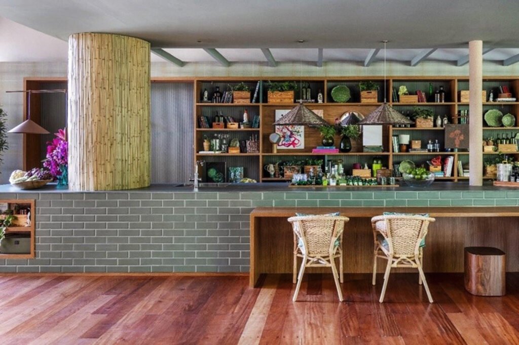 Na Casa Brisa Deca, da arquiteta Paola Ribeiro (CASACOR Rio 2025), os padrões Verde Floresta e Freijó Imperial da Duratex criam um espaço vivo, tropical e integrador. O projeto propõe uma cozinha aberta à natureza, em que o preparo dos alimentos se mistura à contemplação e ao convívio.