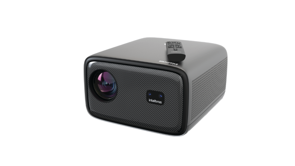 Intelbras’ premium model, the PFL7560 projector offers 8,000 lumens (700 ANSI lumens), ensuring performance even in brighter environments. With Full HD projection of up to 150”, its differentiators are automatic focus and automatic Keystone adjustment, instantly setting the proportion. It has two 12 W speakers, Wi-Fi connectivity for mirroring content, Bluetooth, two HDMI inputs, two USB and one USB-C.