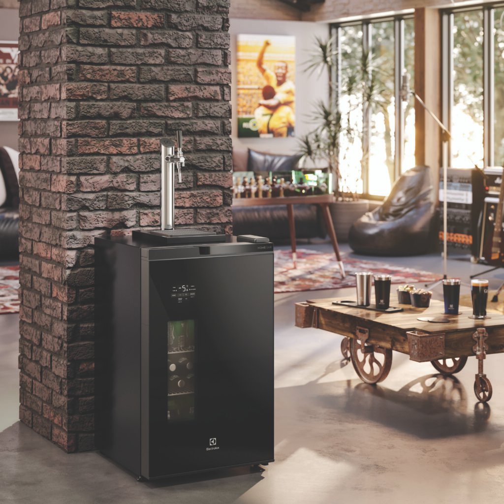 The 100-liter Electrolux model brings together three functions (beer fridge, draft beer dispenser and minibar), adjustable according to the temperature selected on the digital panel, where Turbo and Party modes are also activated. It has a black tempered-glass finish, adjustable shelves and internal LED lighting. The Draft Beer function connects 5-liter kegs to the draft tower, without the need to open the door. Suggested price (28/10/2025): R$ 3.666,00.