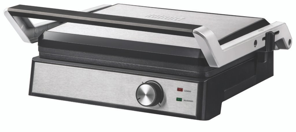 It has a wavy non-stick plate, which grills evenly and facilitates cleaning. The 180° opening allows using the grill as a double griddle, ideal for preparing a variety of foods at the same time. With a maximum temperature of 220°C, it seals meats and other foods quickly. It has a grease collector and LED operating indicators. Suggested price (10/11/2025): R$ 279,90.