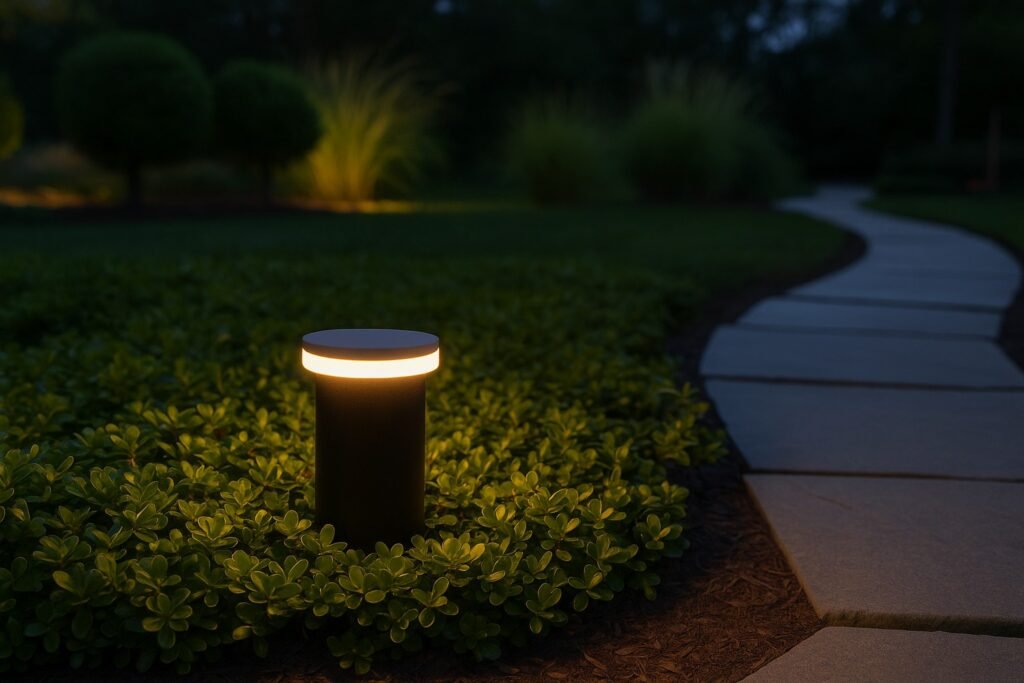 A iluminação externa também ganha relevância estratégica. Espetos de jardim em LED, balizadores de parede e iluminação indireta em fachadas passam a ser utilizados para destacar vegetação, caminhos e volumes arquitetônicos.