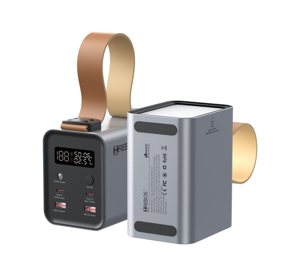 A HREBOS apresenta o power bank Volt PB-996, com capacidade de 60.000 mAh e potência de até 100 W, desenvolvido para quem precisa de autonomia prolongada. O modelo conta com saídas USB-A, USB-C e DC5521, permitindo alimentar desde smartphones até equipamentos compatíveis que exigem maior estabilidade energética. A distribuição inteligente de energia garante carregamento seguro e eficiente para múltiplos dispositivos. O painel digital facilita o controle de carga, enquanto a lanterna LED integrada e a alça reforçam a versatilidade.